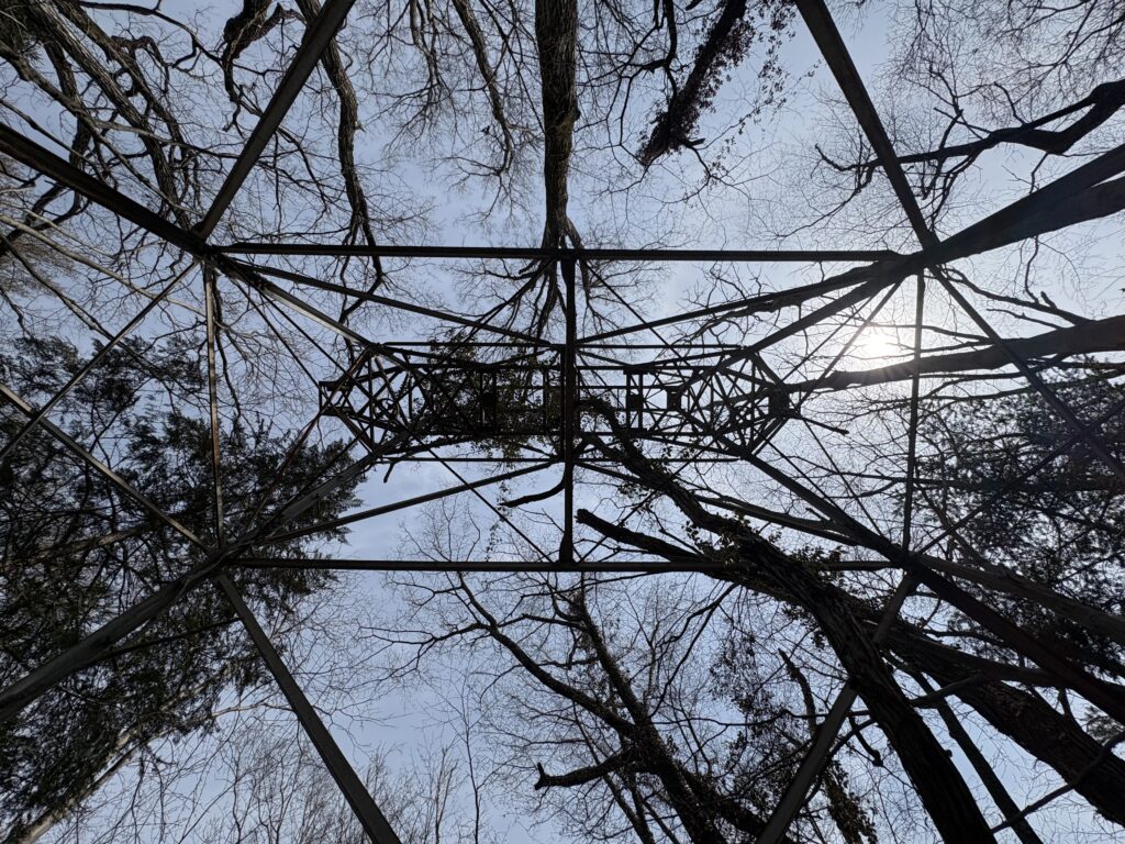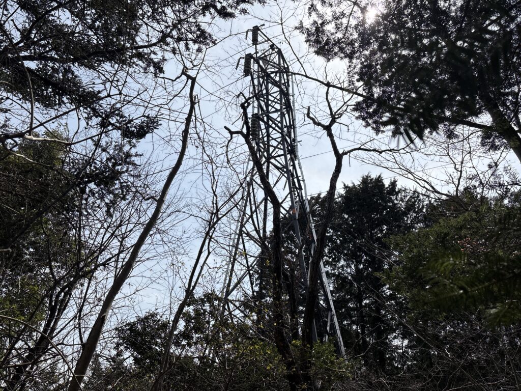 ここは2回目なのであまり撮影もせず先に進んでしまいました。この作業道は現役の鉄塔であるJR東日本八王子-大月線 八王子-上野原No.38の巡視路であるため、さらに進めばJR鉄塔まで行くことができました。地理院地図では東にあるピークまで破線道が続いていますが、道なりに辿ると南側にあるこの鉄塔に行きます。