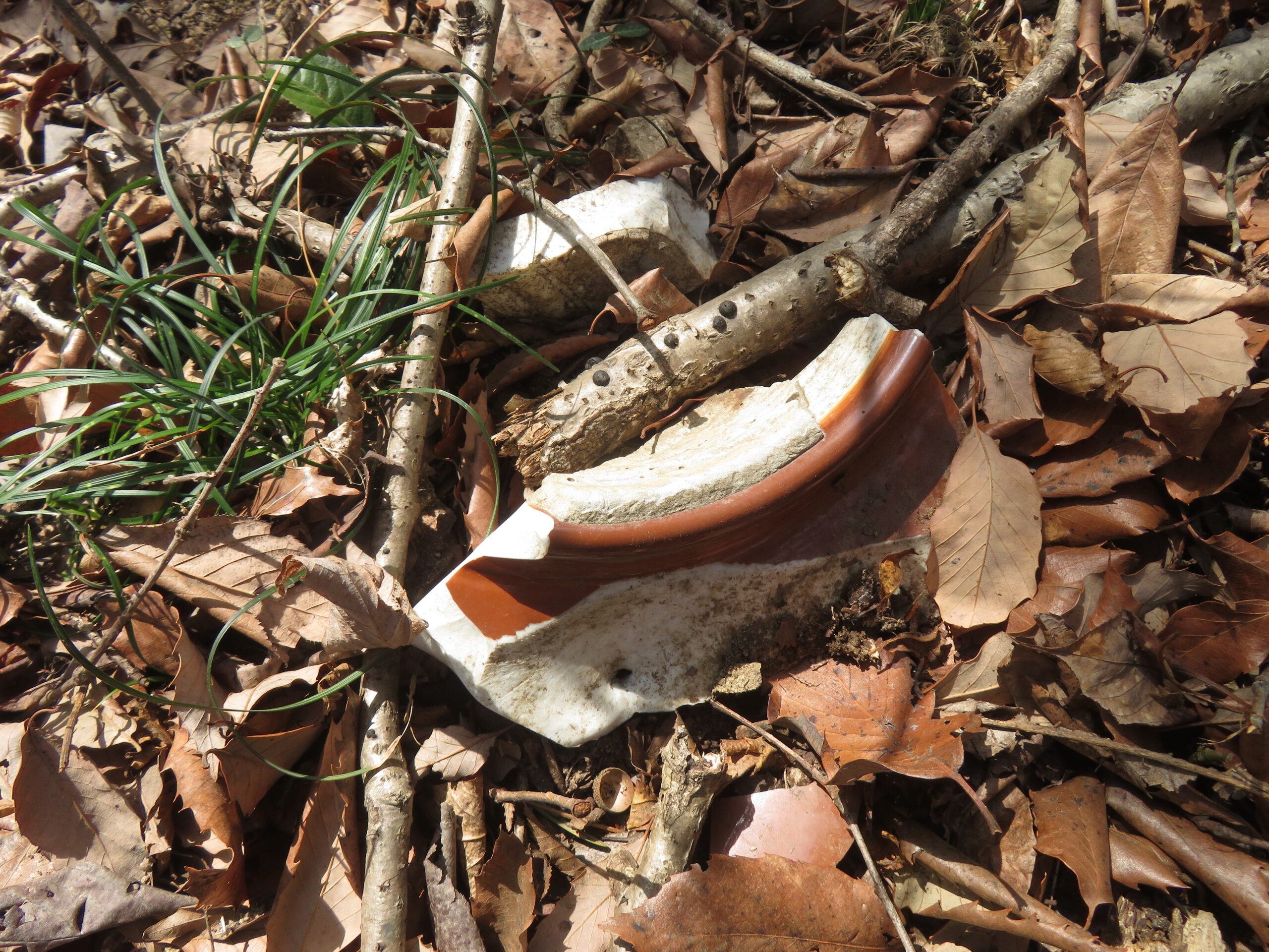 今度はこの鉄塔を一周してみたところ、碍子の破片が落ちているのを見つけました。前回は分からず、これが新しい発見ということでこの記事を書いています。これがなければこの記事は省略するところでした。