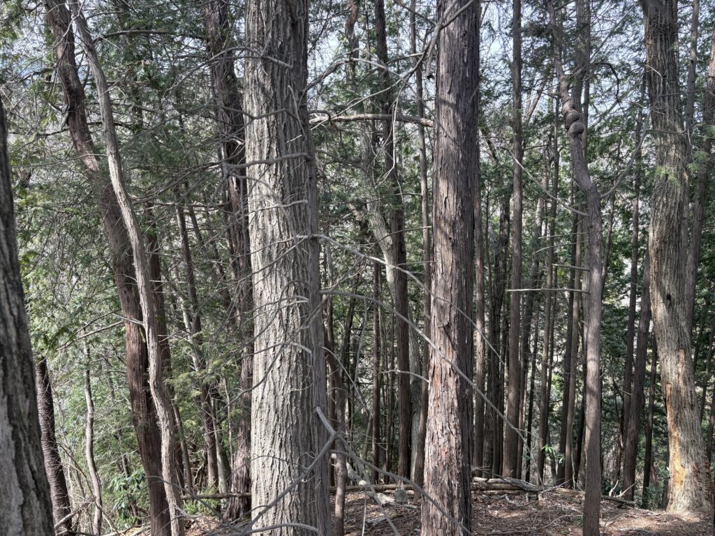 前回の記事では、一般登山道上にある旧谷村線推定No.358を再訪し位置情報を取得しました。そのあと少し作業道に入ったところにある推定No.357も訪問しました。